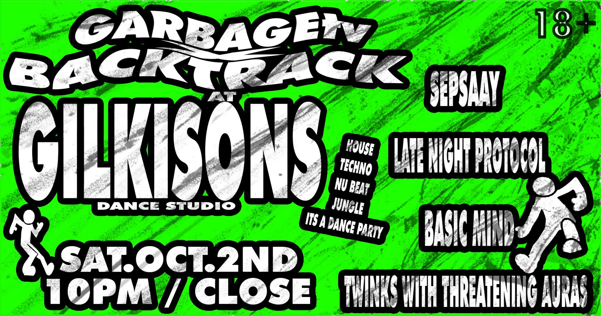 As two worlds collide – Garbage TV and Backtrack fuse to present the long awaited return to Gilkison’s Dance Studio.