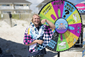 Before your heat, you spin the “Wheel of Shred” to determine which soft-board craft you’re going to rip on. You’ll paddle out with 6-10 of your closest (new) friends all on different soft-boards and proceed to stake your claim as the most “unique” soft-board surfer of the next 15 minutes.