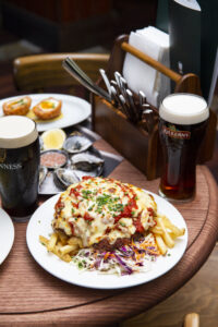 For small bites to start some night of fun, the Sausage Rolls and handmade puff pastry are perfect to lead. It is also highly recommended to take a bite – a mouthful – of the famous and juicy Chicken Parmigiana served up with ham, red sauce, cheese, and chips and slaw. Pair it with a pint or two of either Guinnes and Kilkenny, and truly, you’ll be in for a true Irish bar trope.